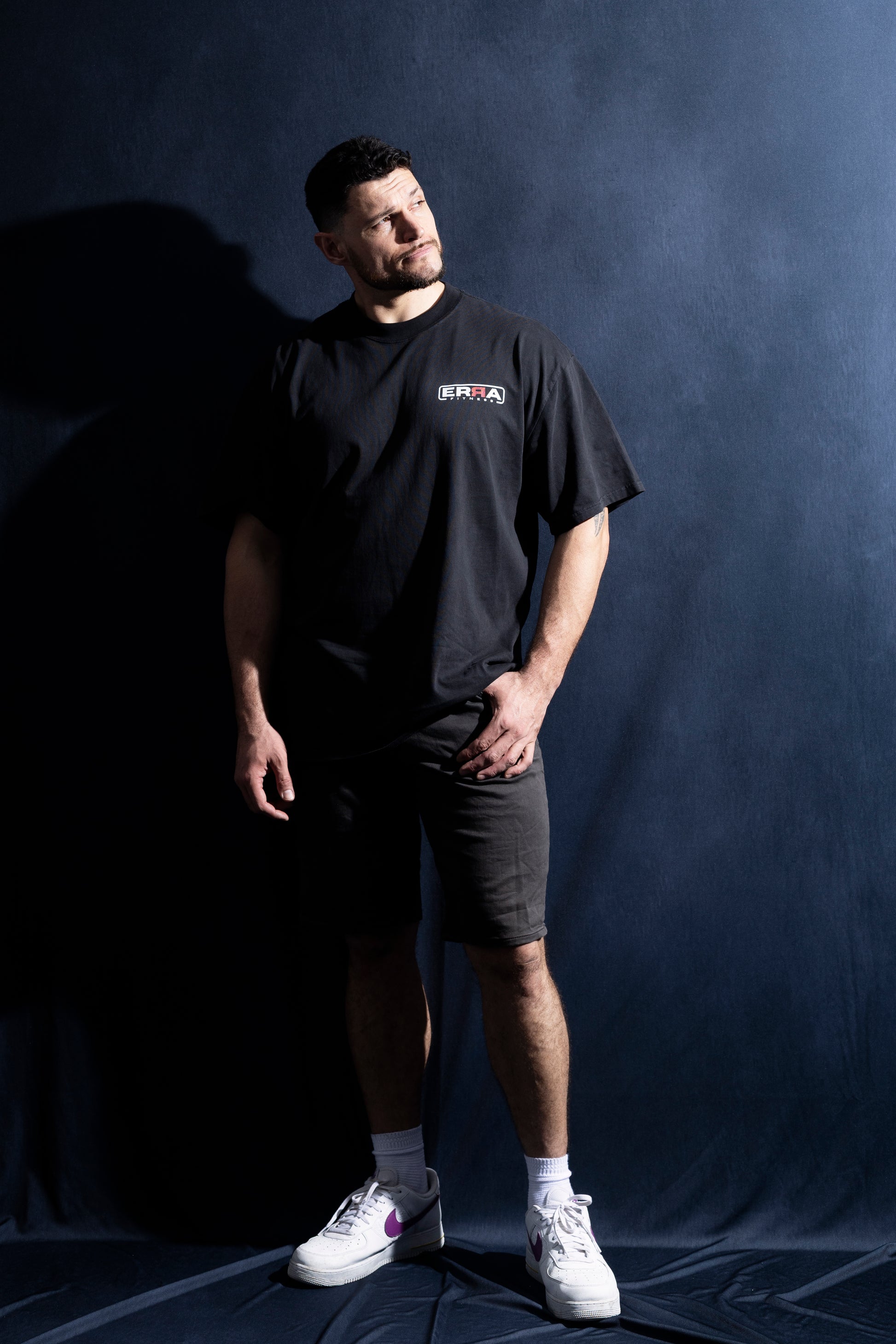 The ERRA Fitness Logo Heavy Faded Tee, crafted from 100% carded cotton for durability and comfort. With a heavy 240 GSM weight and garment dyed finish, it features a boxy relaxed fit, dropped shoulders, and twin-stitched wide neck ribbing. Built to last for a timeless, relaxed look.